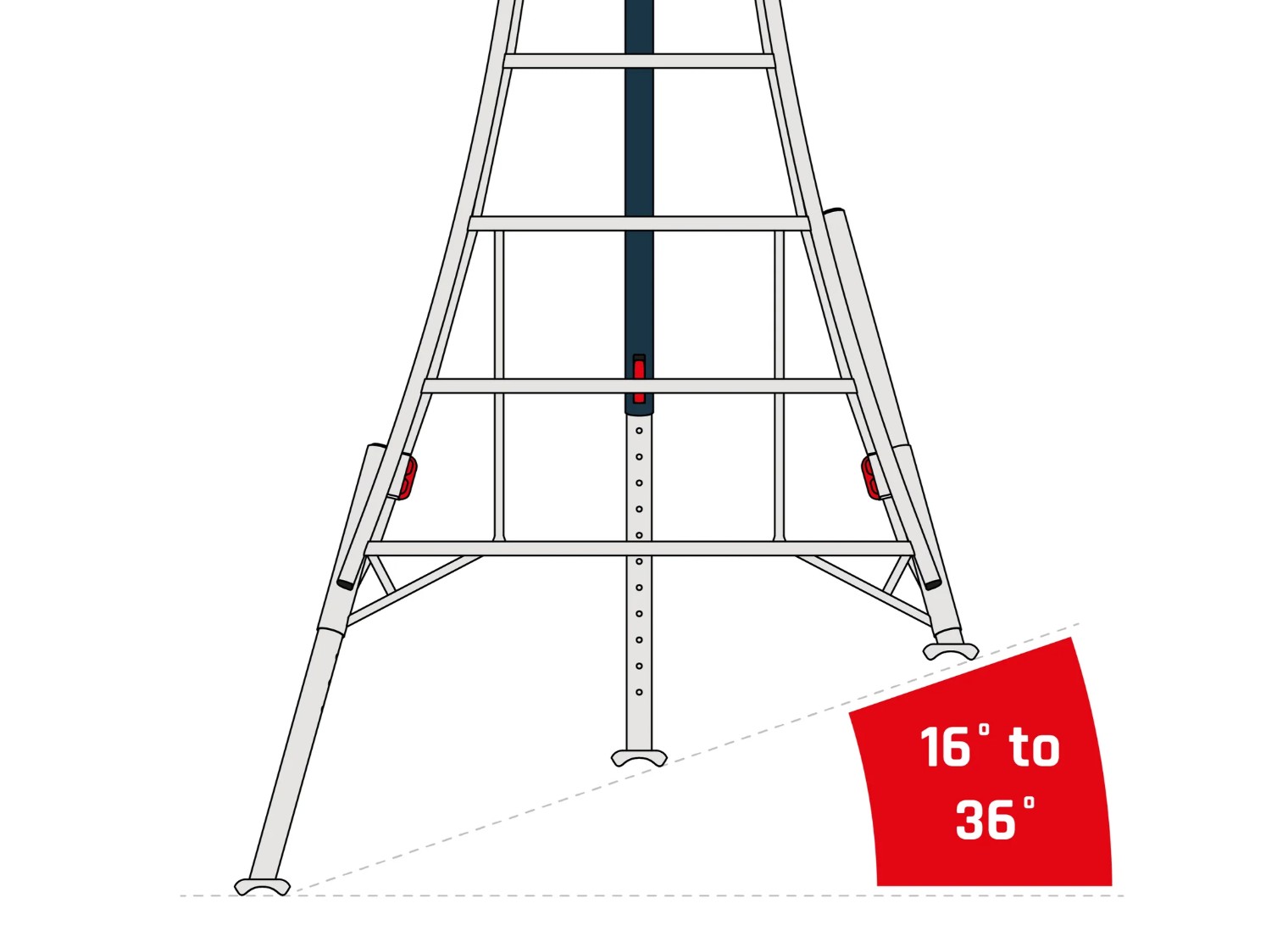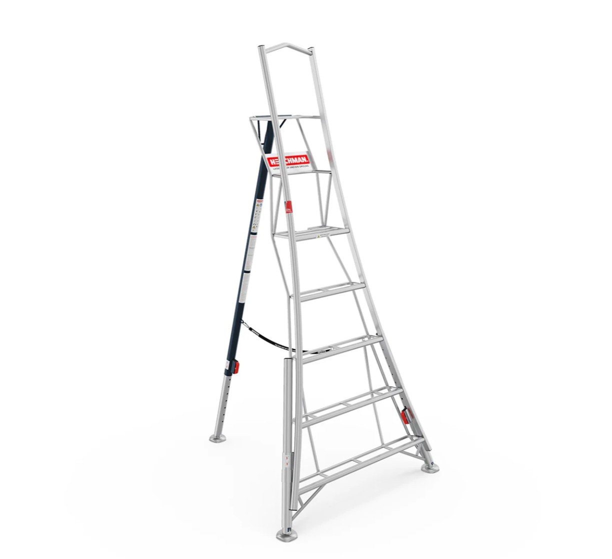 Täielikult reguleeritaval kolmjalg-redelil on kolm iseseisvalt liigutatavat jalga, mis võimaldavad kasutada redelit igal pinnasel, tagades turvalisuse kõrgustes töötades.